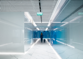 Lo studio moscovita Vox Architects si fa ispirare dalla conquista del cosmo per un futuristico interno che, grazie anche alla ceramica italiana, dialoga con la storia della città in cui studiò e atterrò il primo uomo a volare nello spazio