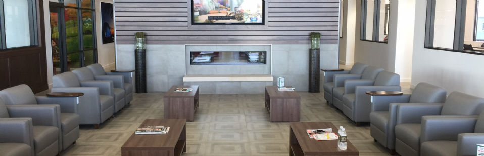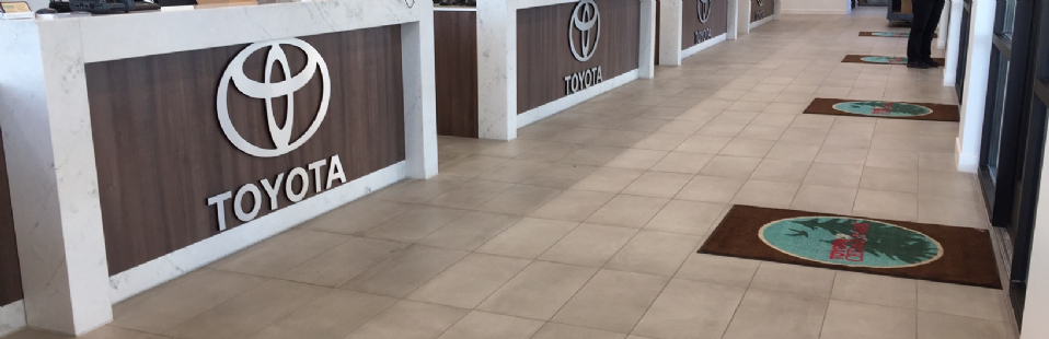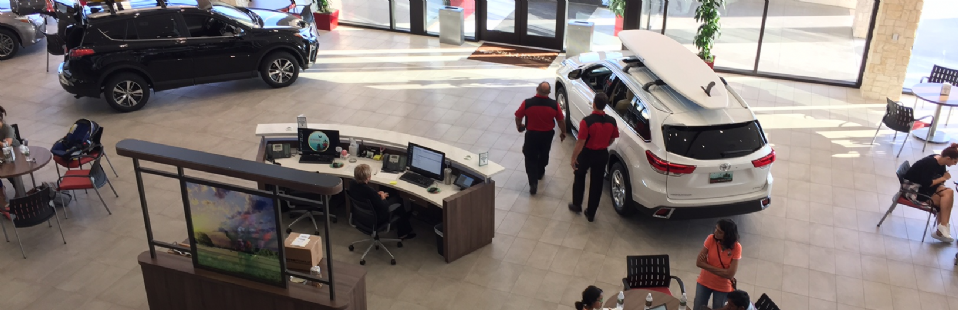 Cedar Park è un sobborgo della città metropolitana di Austin dal cui centro dista una trentina di chilometri. Qui, lungo la Texas 183 Toll Road, Gulf States Toyota, distributore di veicoli Toyota in diversi stati USA fra cui il Texas, ha voluto localizzare la sua ultima concessionaria. Il progetto Toyota of Cedar Park, è stato elaborato da Gensler e attuato da White Construction Company. Ne è risultato un multiplo corpo di fabbrica di 6.000 metri quadri circa, parzialmente a due piani fuori terra, edificato al centro di un'area di 80.000 metri quadri. Sul fronte, un architettonico portale in vetro e un logo rosso vivo comunicano l'immagine del brand e identificano chiaramente l'ingresso allo showroom. All'interno uffici amministrativi, magazzino ricambi, area di servizio coperta di 1.100 metri quadri, autolavaggio. A supporto il Java Park Café, confortevoli salotti d'attesa, boutique regali, area gioco bambini e area park per cani. Sin dalle sue fasi propedeutiche il progetto si è ispirato alle modalità costruttive della Texas Hill Country, introdotte dai primi coloni che arrivarono qui nel 1800, in cui prevale l'uso della pietra e del legno massiccio. Sarebbe stato pertanto impensabile rivestire gli esterni con i pannelli di alluminio composito ACM, che sono lo standard Toyota. Inizialmente si ipotizzò l'utilizzo di pietre di fabbrica, risultate economicamente convenienti in precedenti esperienze, ma furono poi posate pietre naturali fornite da una vicina cava a un costo inferiore a quelle industriali. Il passo successivo fu di adeguare anche gli interni ai codici stilistici locali: ”Con il progredire del progetto, abbiamo sentito con forza che, dato il design esterno, le rifiniture interne dovevano riflettere la natura di Cedar Park e Texas Hill Country e che avevamo bisogno di fondere i materiali storici con le sensibilità moderne del consumatore” sottolinea Rick Ferrara di Gensler. In armonia con i principi della certificazione LEED nella costruzione sono stati utilizzati materiali del luogo o con alto tasso di contenuti di riciclo. Il terreno esterno non pavimentato (la realizzazione del vasto piazzale espositivo aveva richiesto un grosso lavoro di sbancamento) è stato riportato allo stato originale con accorgimenti tesi a ridurre manutenzione e consumo di acqua. Apparecchi di illuminazione a led di ultima generazione e sensori di presenza massimizzano il risparmio di energia elettrica. Mentre Il tetto riflettente del corpo centrale e l'alto tasso di riflessione solare del cemento usato nel piazzale contrastano la formazione delle isole di calore. In una concessionaria di auto la pavimentazione, sottoposta a forti sollecitazioni dall'elevato calpestio, dai carichi pesanti e dai prodotti chimici, oltre che esteticamente pregevole deve essere pratica e affidabile. Per la Toyota Cedar Park è stata apprezzata la robustezza tipica e la facile manutenzione del grès porcellanato Made in Italy, posando le lastre della collezione One di Caesar effetto cemento nello showroom e Cement Frame (un decoro vintage) nelle sale d'attesa.